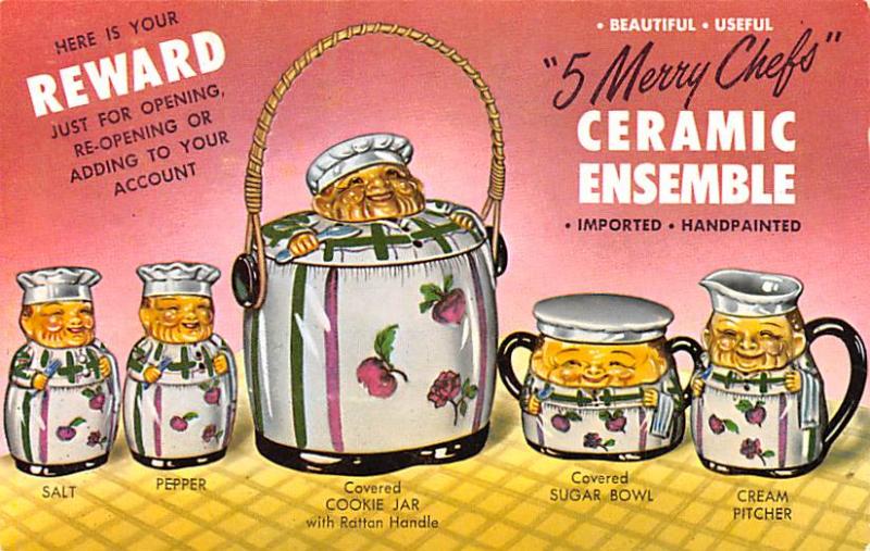 Cheramic Ensemble Advertising Postcard Typing on back, Grade: 1, , Size: Regular size: Approx 3 1/2 X 5 1/2 inch (9 cm X 14 cm) Grading Scale: Grade 1 = Perfect corners Grade 2 = Very Minimal corner wear, no c ... Read More
