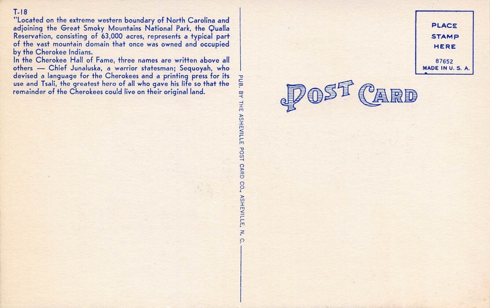 Cherokee Indian Basket Maker Great Smoky Mountains National Park linen postcard