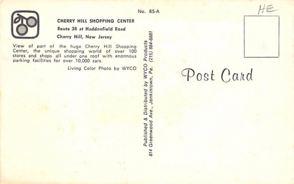 Cherry Hill Shopping Center in Cherry Hill, New Jersey Postcard - Unused Grade: 1 Size: R - Regular size: Approx 3 1/2 X 5 1/2 inch (9 cm X 14 cm) Grading Scale: Grade 1 = Perfect corners Grade 2 = Very Minima ... Read More