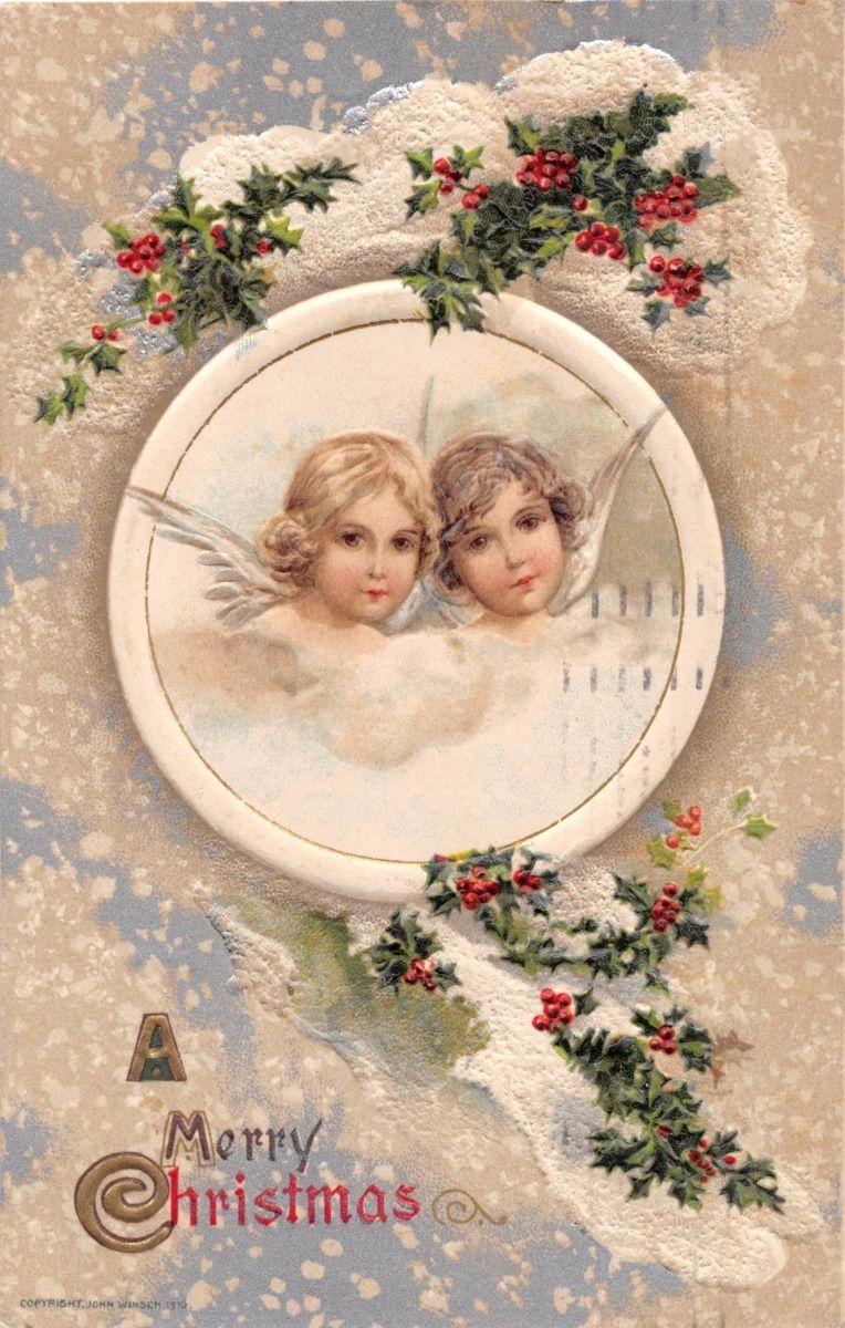 CHERUBS IN CIRCLE WITH HOLLY~JOHN WINSCH CHRISTMAS POSTCARD c1910
