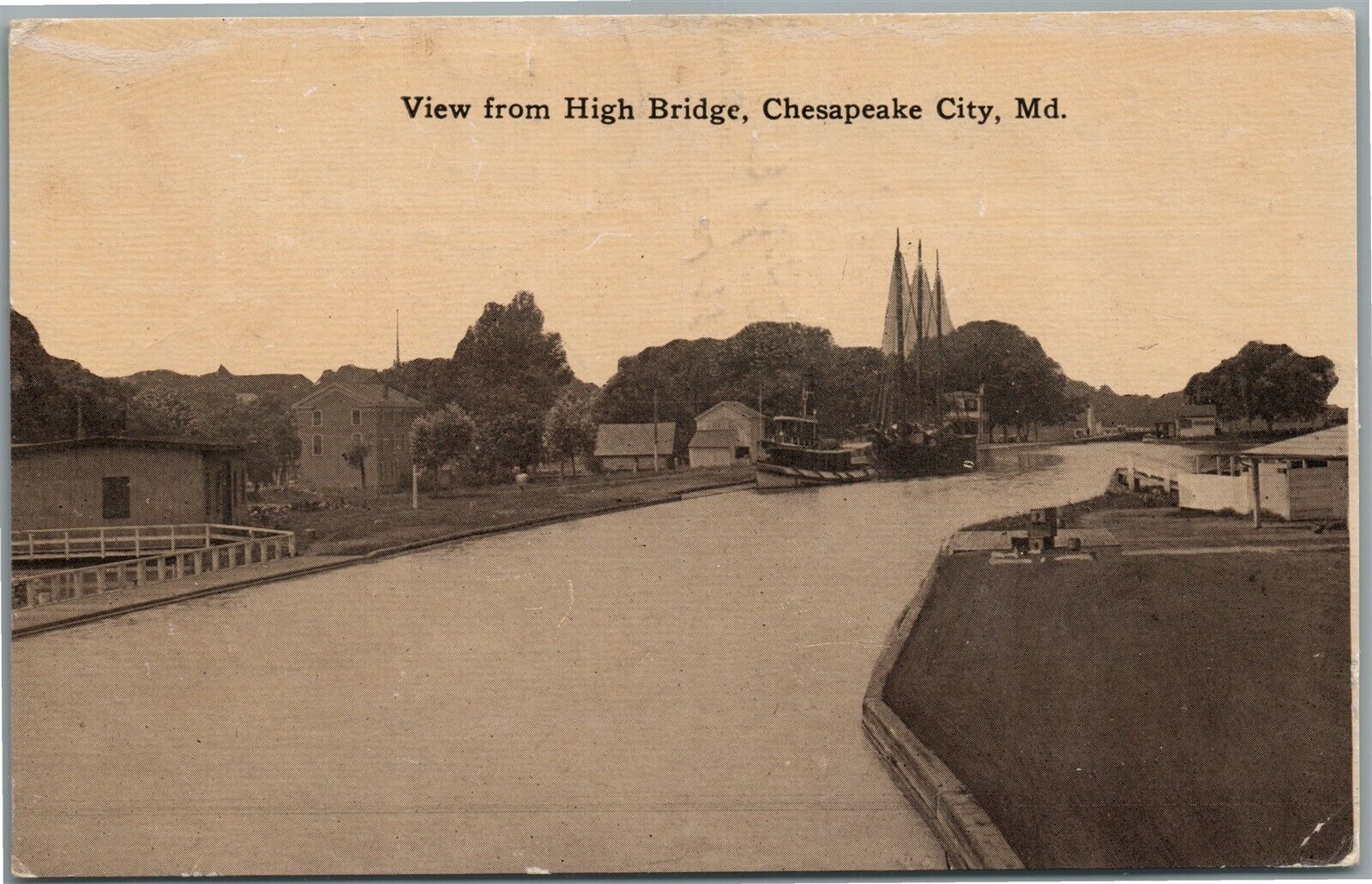 CHESAPEAKE CITY MD VIEW FROM HIGH BRIDGE ANTIQUE POSTCARD