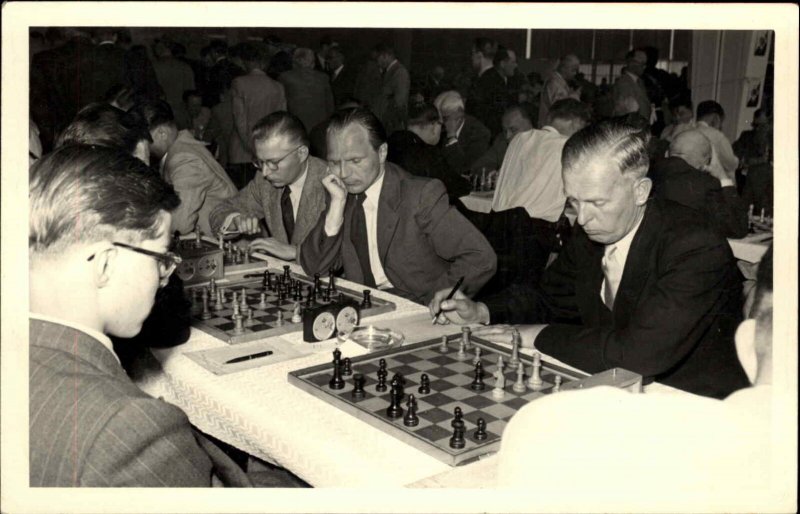 Chess Tournament Players Pieces Timer Clocks Real Photo Postcard #2