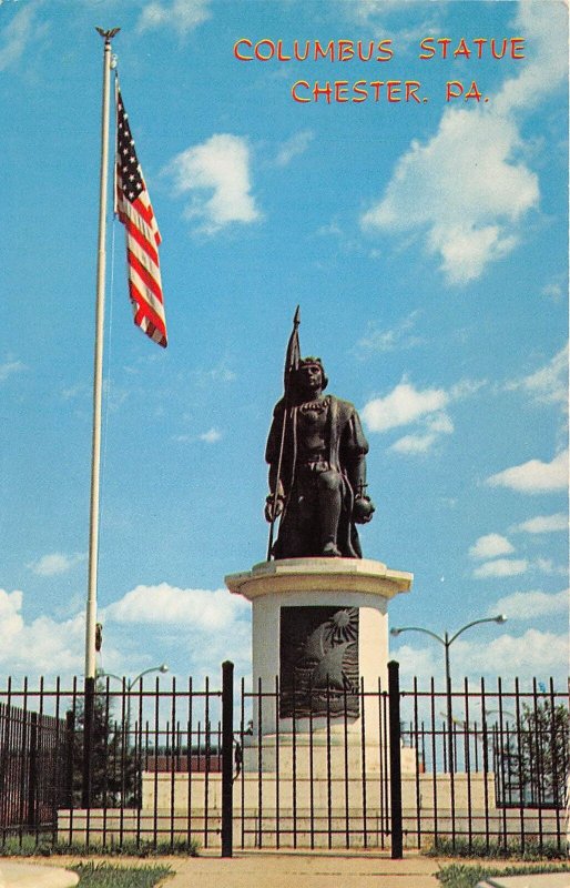 Chester Pennsylvania 1960s Postcard Columbus Statue