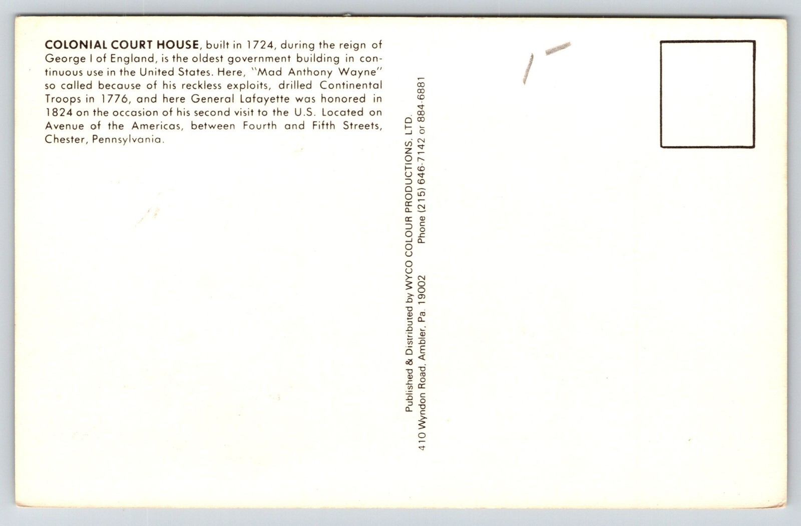 Chester Pennsylvania~Colonial Courthouse~Clock~USA Flag~Cupola~1950s Postcard