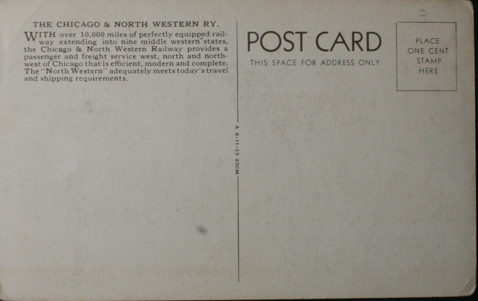 Chicago and Northwestern Advertising Postcard