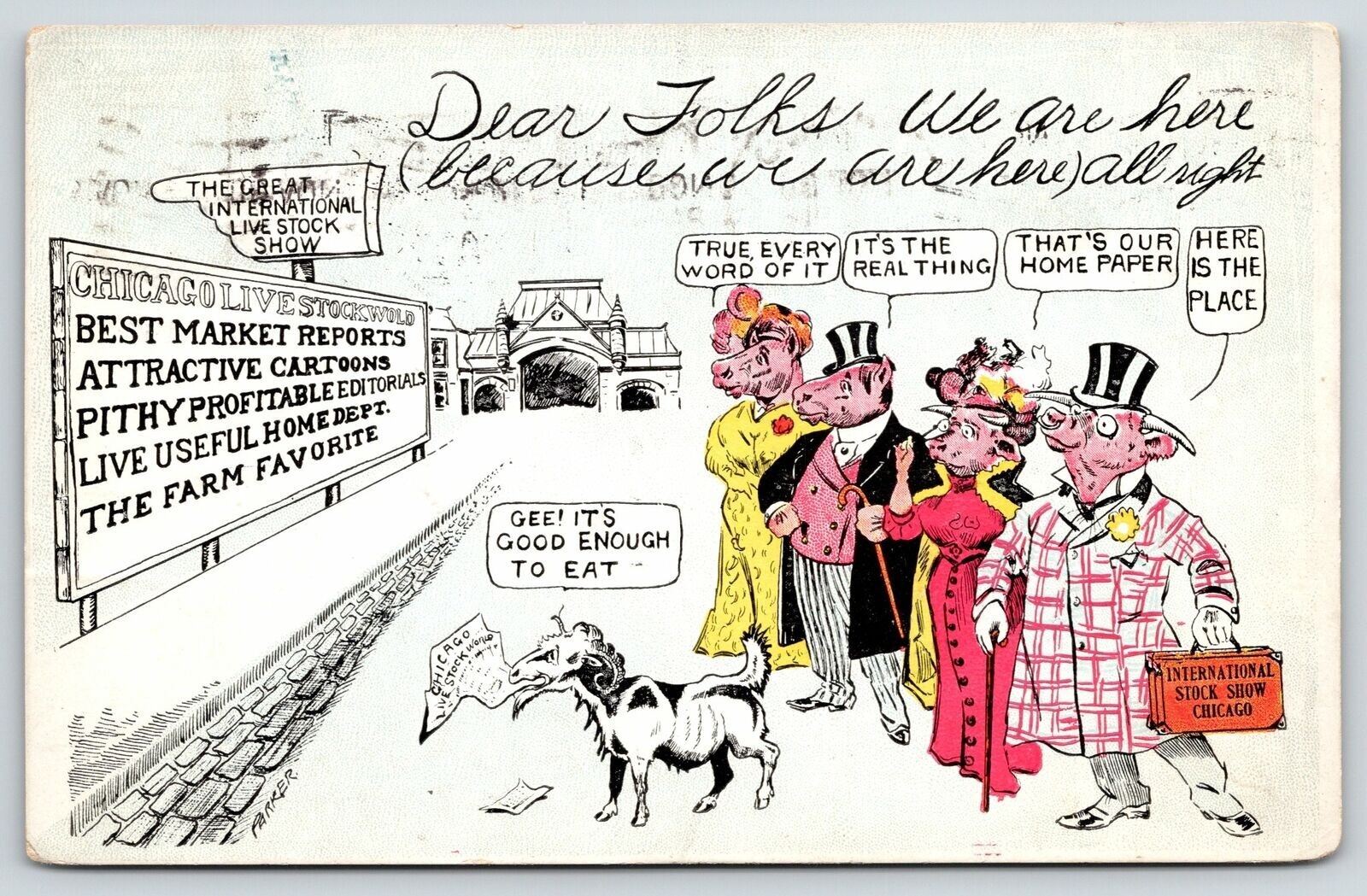 Chicago Fantasy Stock Yard Comic~Dressed Pigs & Cow Couples Arrive for Show~1908