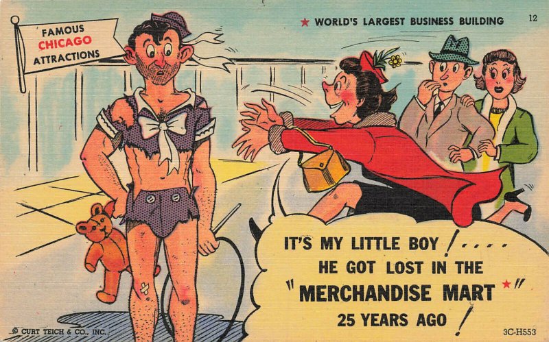 Chicago IL "Merchandise Mart" Largest Building Comic Linen Curt Teich Postcard