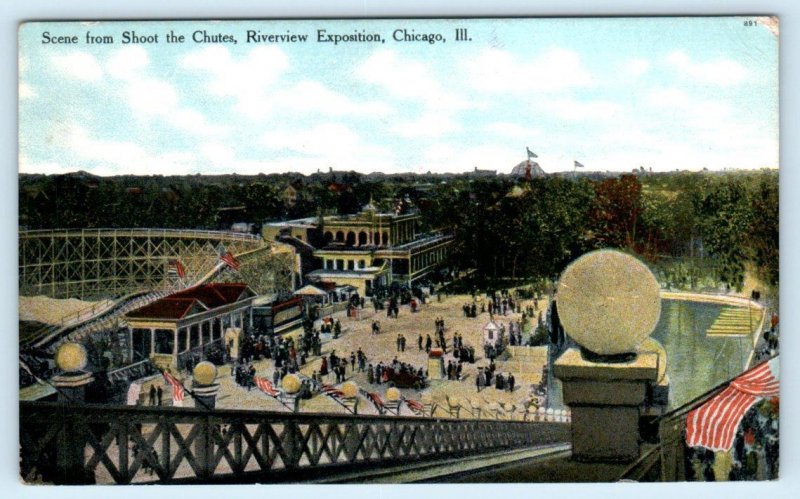 CHICAGO, IL~ Shoot the Chutes RIVERVIEW EXPOSITION Roller Coaster 1910s Postcard