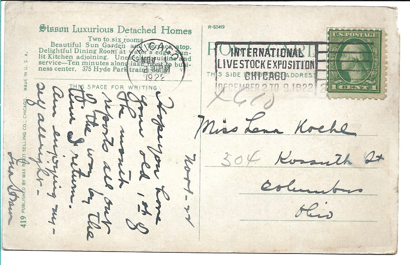 Sisson - Lake Michigan at Fifty-Third Street, Chicago International Livestock Exposition Cancel - Dec 2 to 9, 1922 Standard size US postcard. See scans. I ship your card in between two pieces of custom cut thin c ... Read More