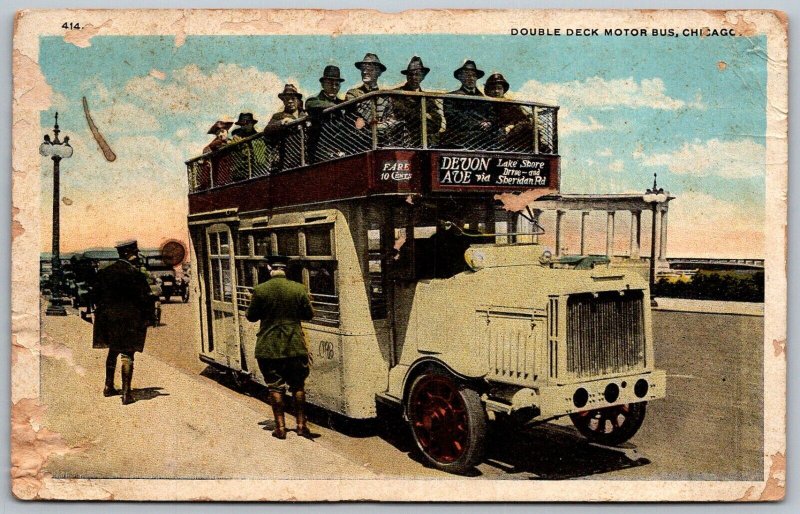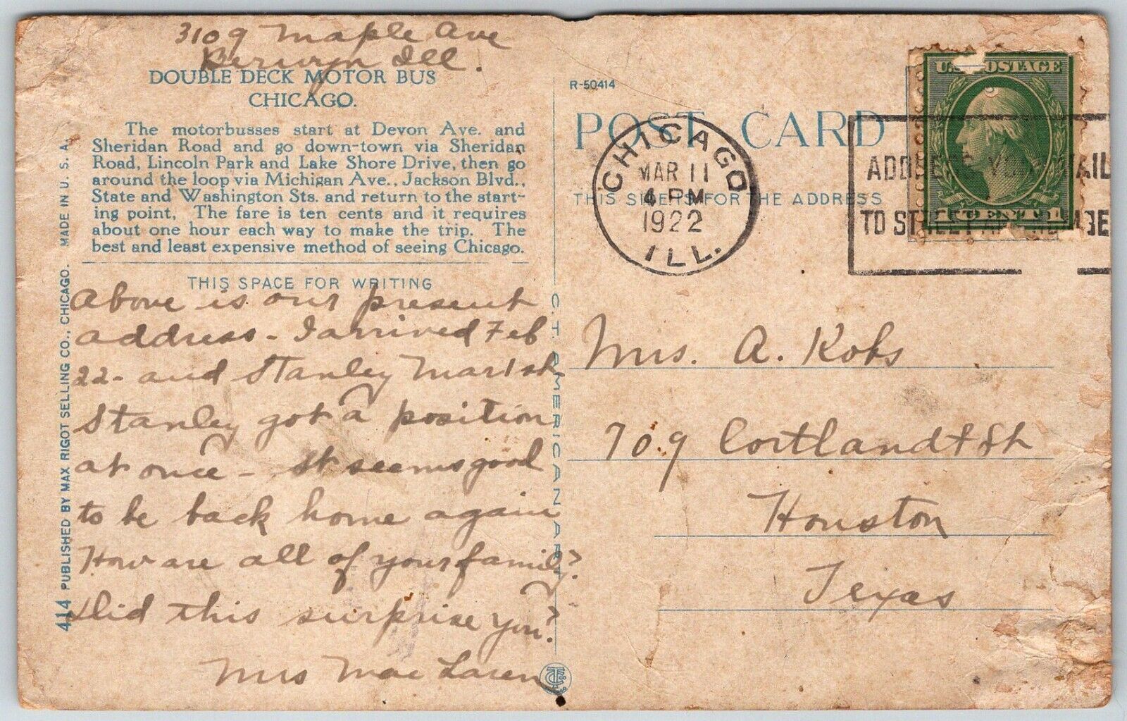 Chicago Illinois 1922 Postcard Double Decker Motor Bus