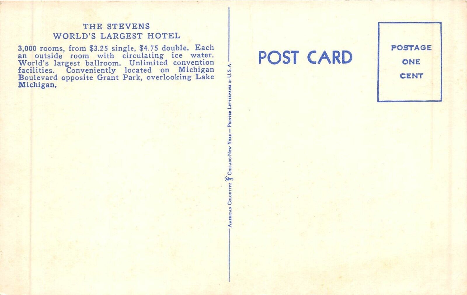 Chicago Illinois 1940s Postcard Stevens Hotel
