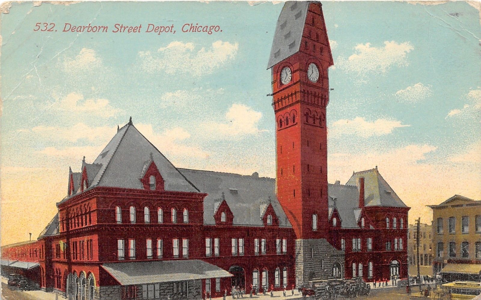 Chicago Illinois~Deerborn Street Depot~Tall Clock Tower~1911 Postcard