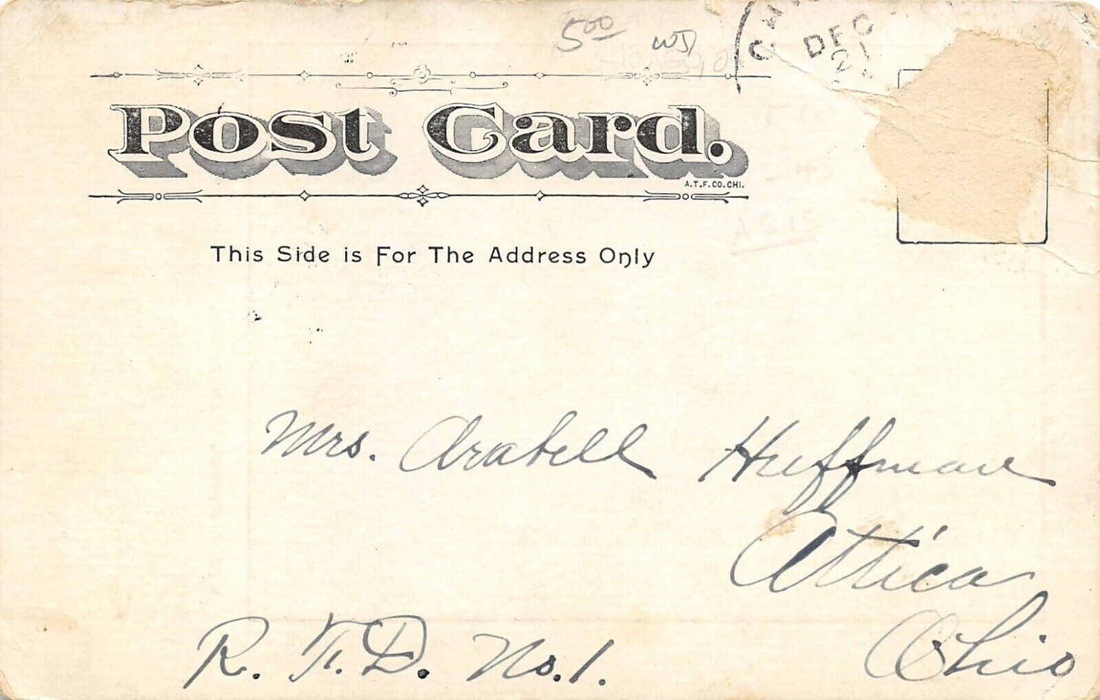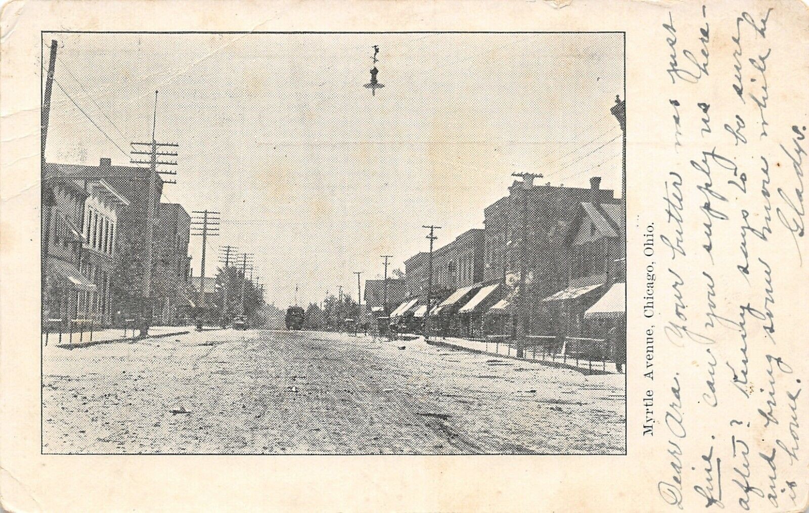 Chicago OH~Hitching Posts~Dirt Main St Trolley~Store Fronts~Hanging Light c1906
