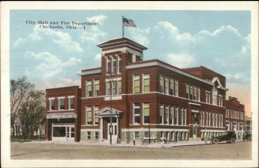 Chickasha OK City Hall Fire Station c1920 Postcard