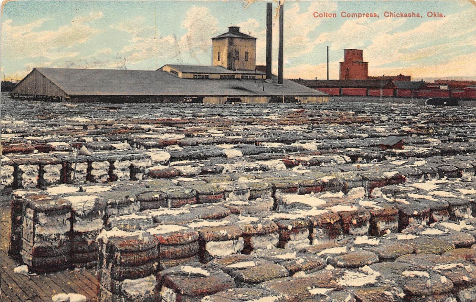 Chickasha Oklahoma 1909 Postcard Cotton Compress Cotton Bales