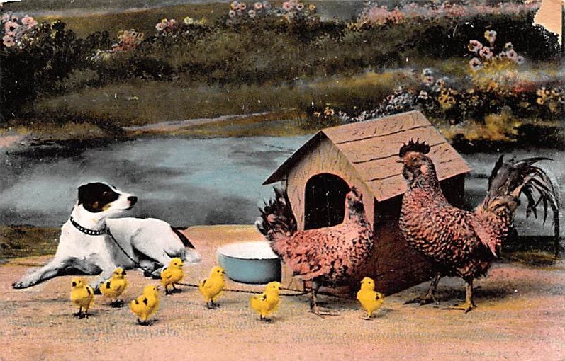 Chickens Postcard Unused, Grade: 3, light paper wear right top corner, Size: Regular size: Approx 3 1/2 X 5 1/2 inch (9 cm X 14 cm) Grading Scale: Grade 1 = Perfect corners Grade 2 = Very Minimal corner wear, ... Read More