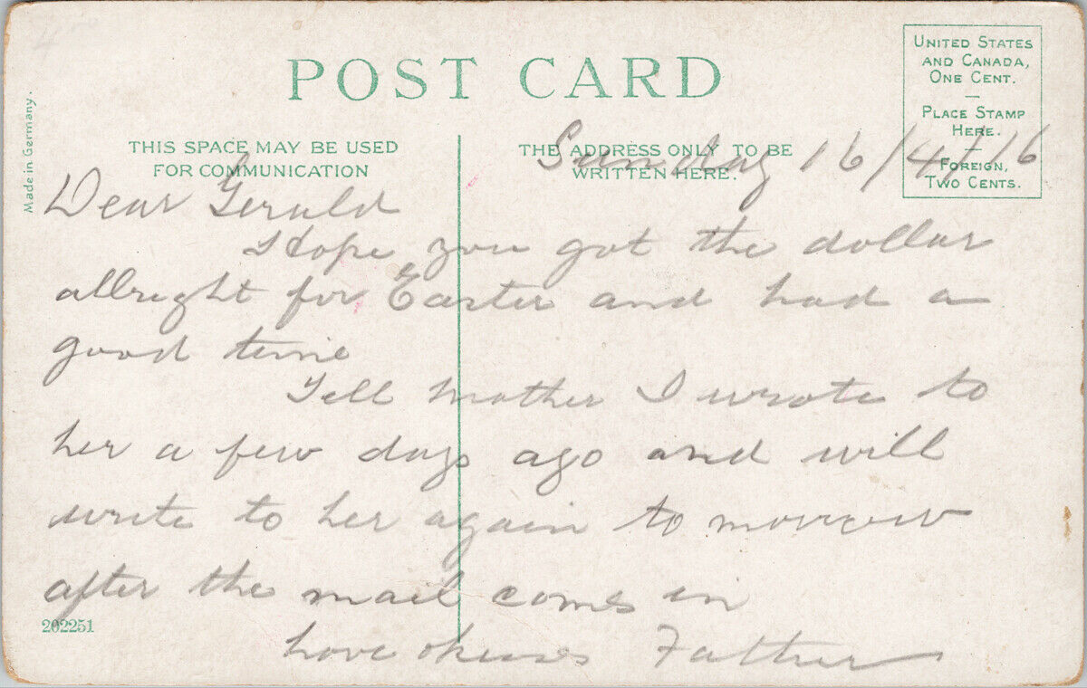 This old card has a crease at the middle left edge and general aging wear around the perimeter, please see photos.