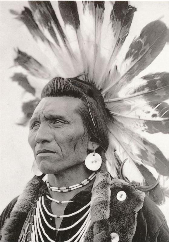 Chief Eagle, Salish Indian. circa 1910 Western USA - Recent Print. Continental sized chrome card. Indigena Fine Art Publishers of Tucson Arizona. Montana Historical Society. Excellent condition.