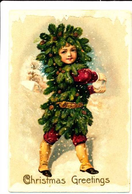 Child in Tree Costume Christmas Greetings Mini Postcard