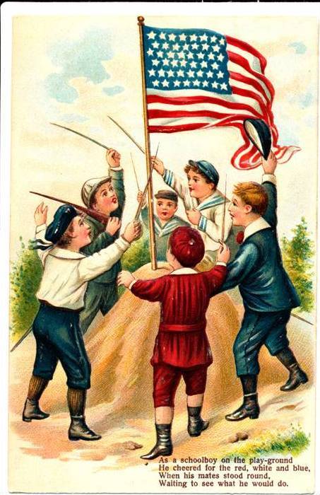 Children and Flag Patriotic Postcard - 1909