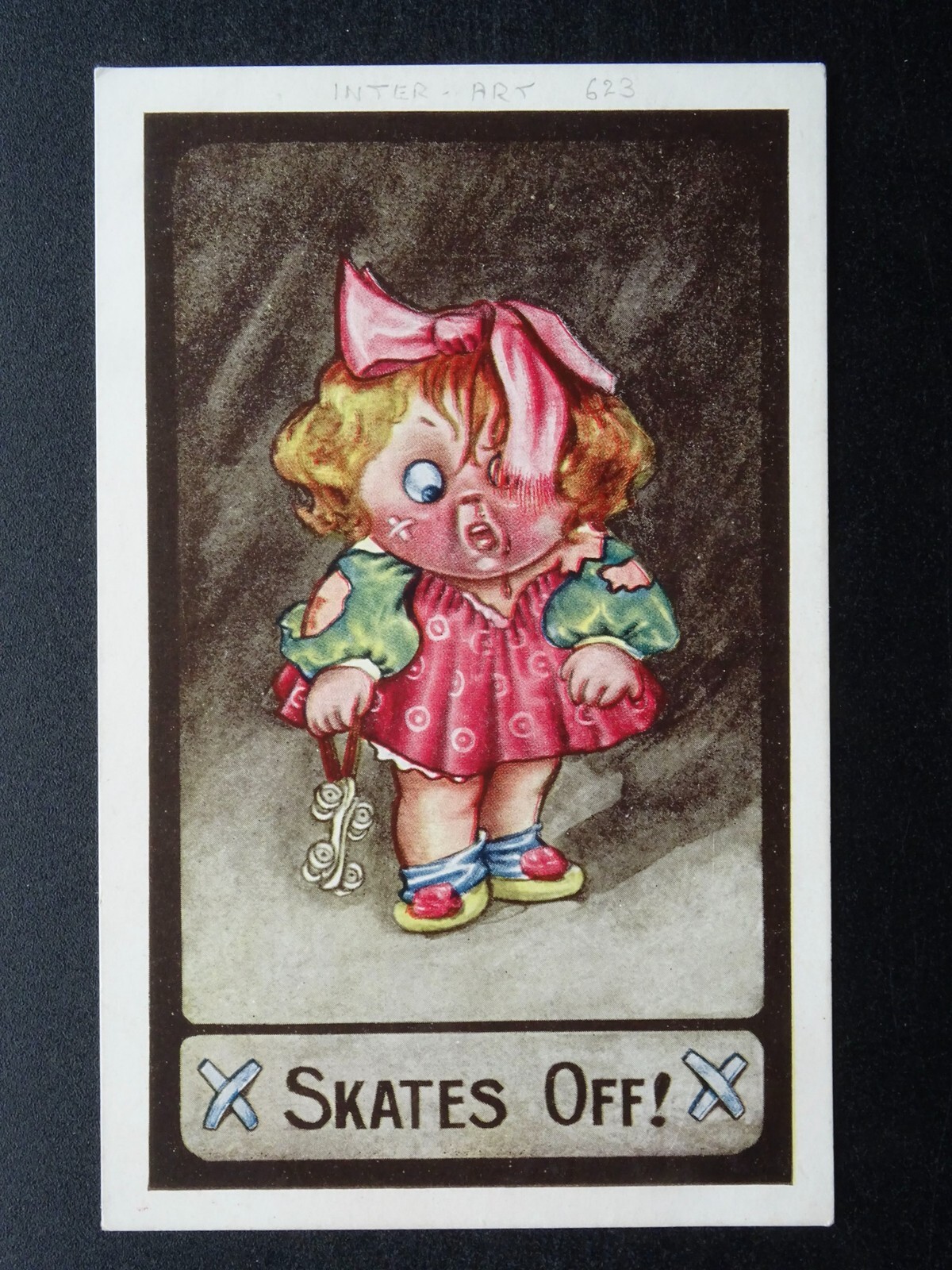 Children / Kute Kiddies ROLLER SKATING (1) SKATES OFF c1910 Postcard
