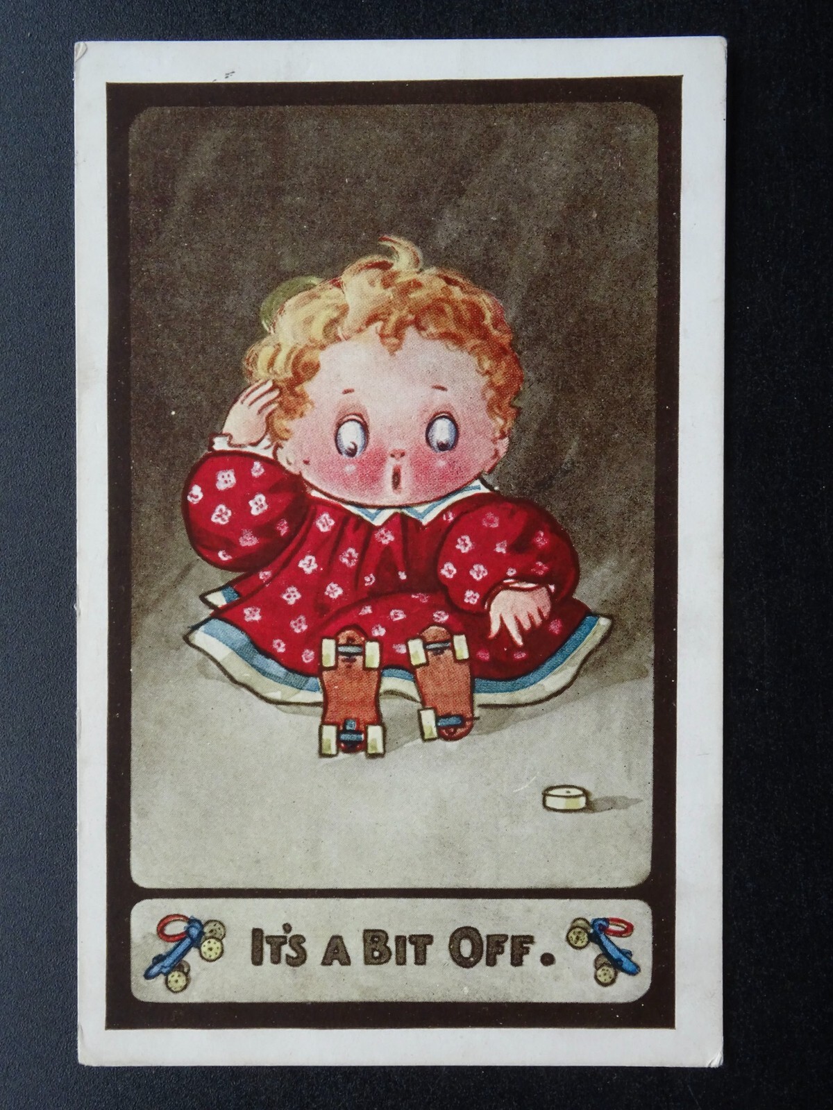Children / Kute Kiddies ROLLER SKATING (4) WHEEL / IT'S A BIT OFF c1910 Postcard