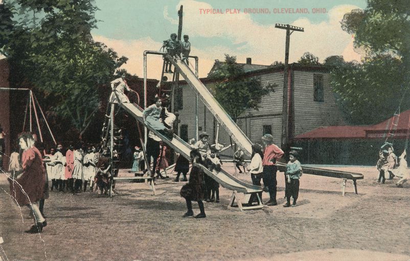 Children Playing - Typical Play Ground in Cleveland, Ohio. Divided Back era Post Card (1907 to 1915 or so). Average to good condition - Creases lower left corner.