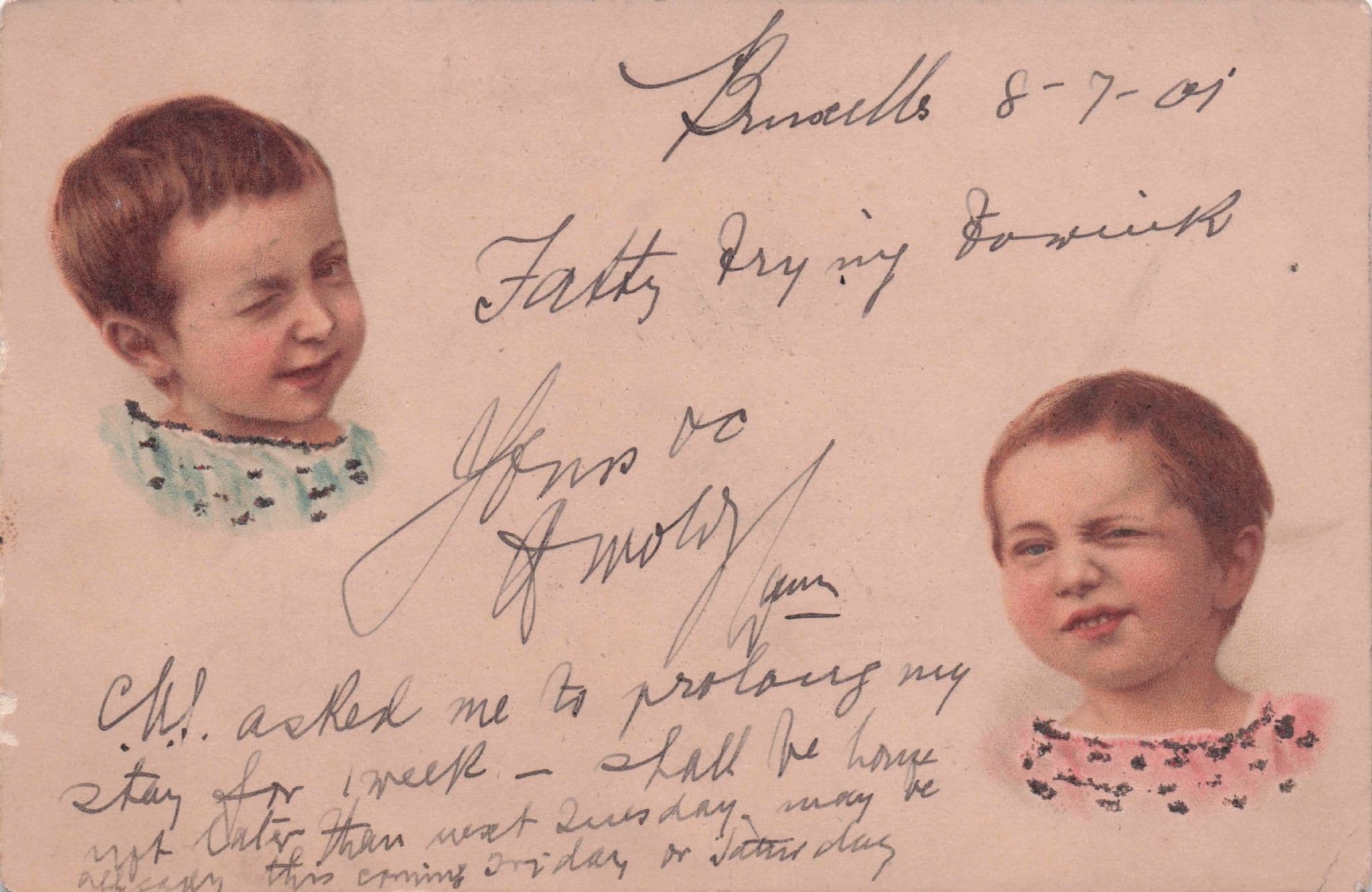 Children Winking Sent To Fatty 1907 Belgium Old Comic Postcard
