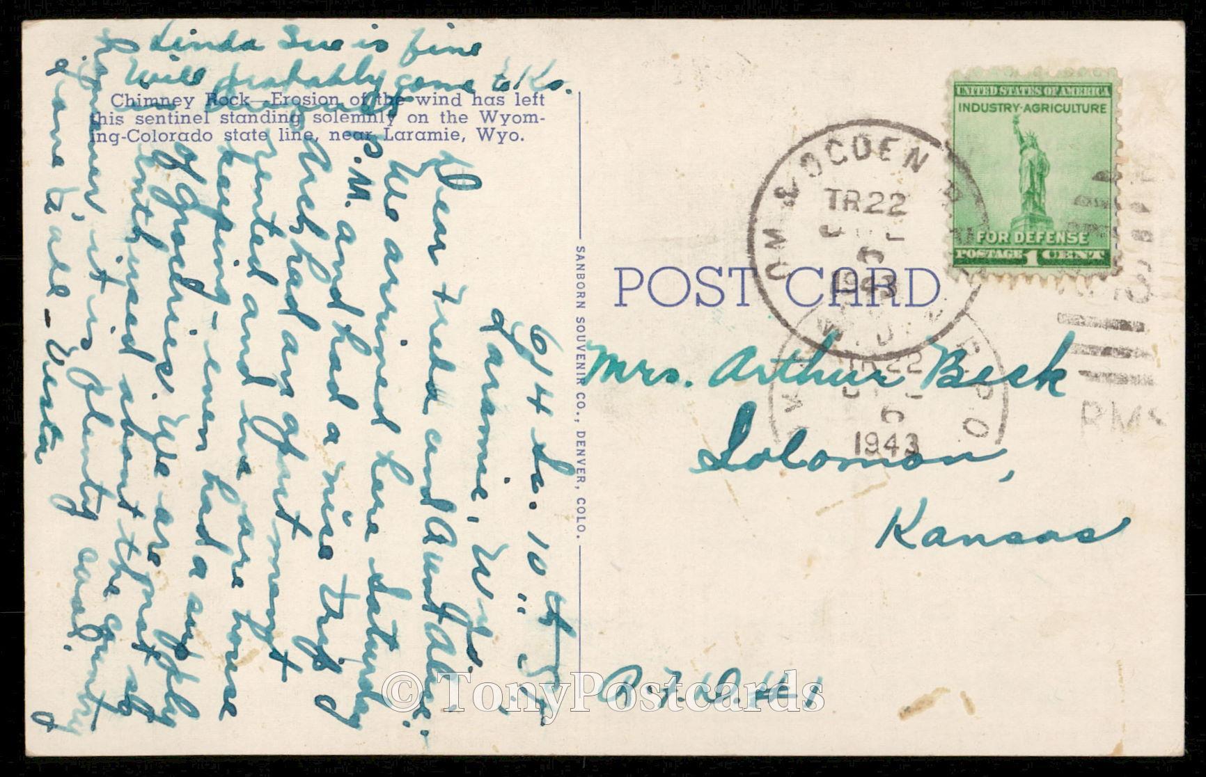 Title: CHIMNEY ROCK, WYOMING Condition: See scans