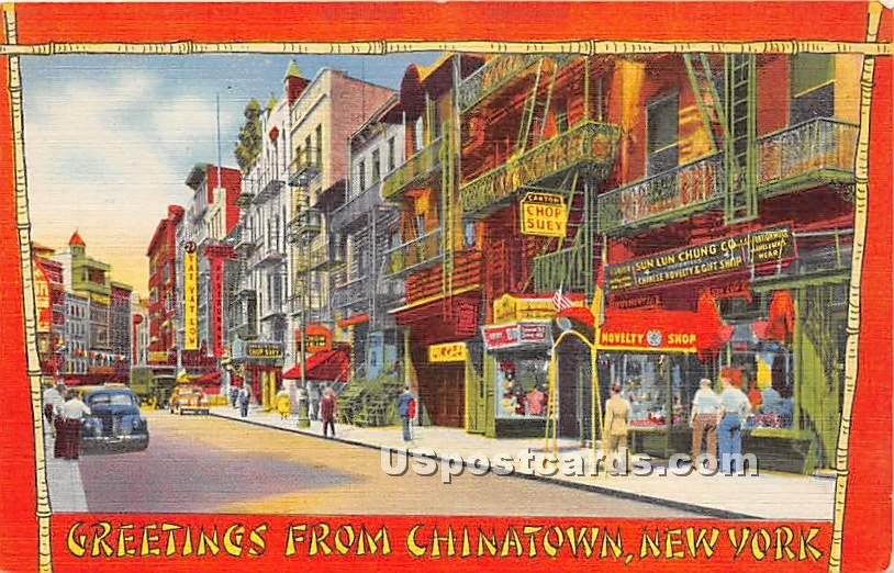 Chinatown, New York Postcard - Unused Grade: 1 Size: R - Regular size: Approx 3 1/2 X 5 1/2 inch (9 cm X 14 cm) Grading Scale: Grade 1 = Perfect corners Grade 2 = Very Minimal corner wear, no creases Grade 3 = ... Read More