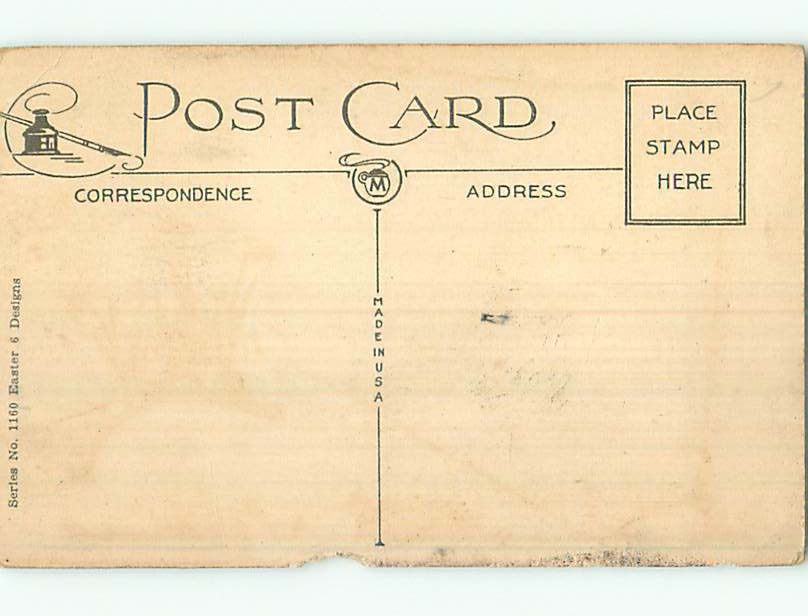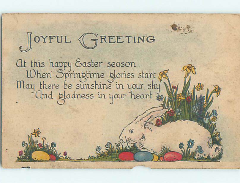 Chipped 1920's Easter BUNNY RABBIT SITS BY THE COLORED EGGS o6054