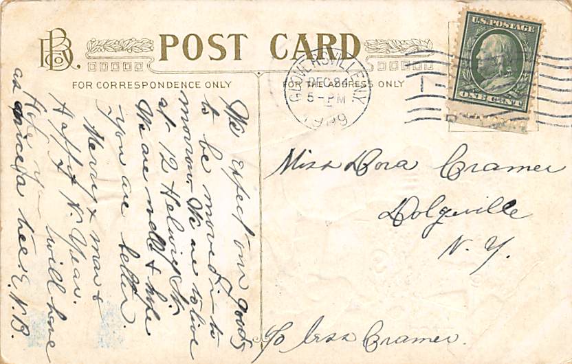 Christmas Postcard 1909, Grade: 3, light corner wear, postal marking on front, Size: Regular size: Approx 3 1/2 X 5 1/2 inch (9 cm X 14 cm) Grading Scale: Grade 1 = Perfect corners Grade 2 = Very Minimal corne ... Read More