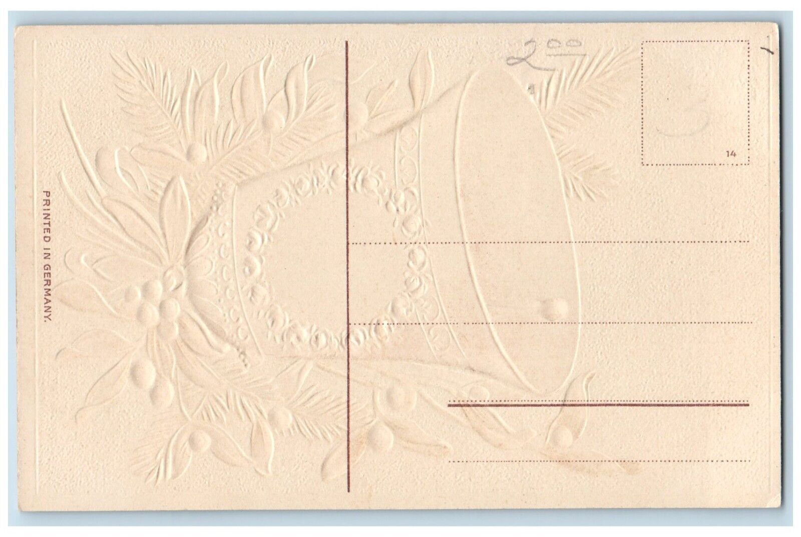 Christmas And New Year Postcard Ringing Bell Clock Mistletoe Embossed c1910's
