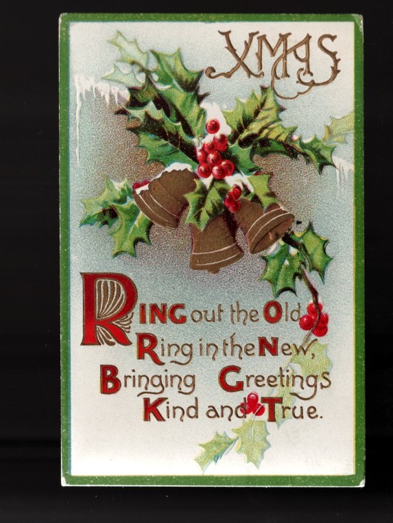 Christmas Bells Holly Embossed Picture Postcard!