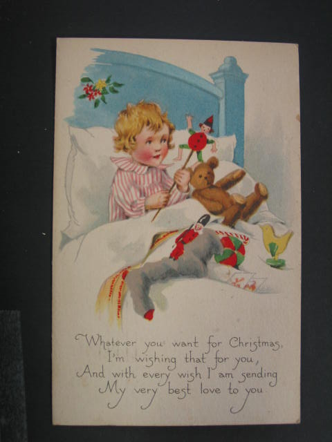 CHRISTMAS BOY & TOYS TEDDY BEAR MARIONETTE ETC c1910 PC