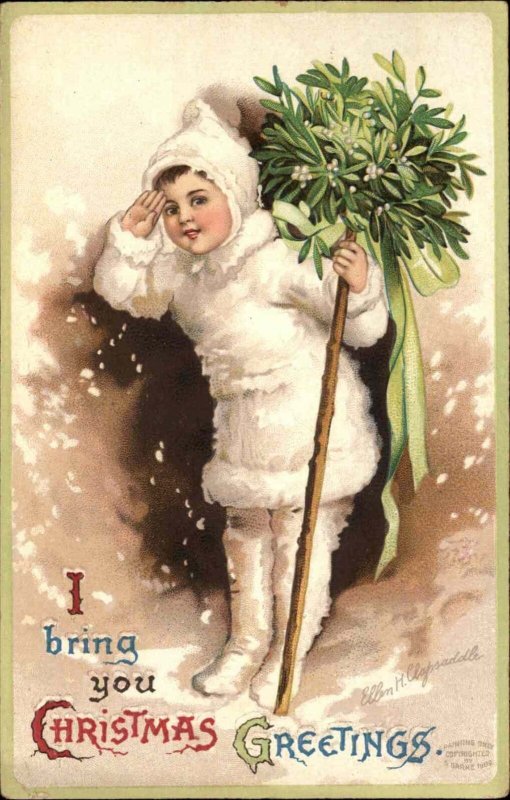 Christmas Boy White Snow Suit Embossed Ellen Clapsaddle c1910 Postcard #1