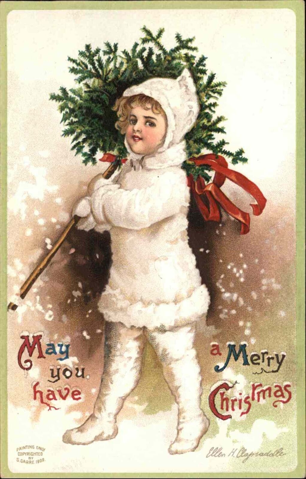 Christmas Boy White Snow Suit Embossed Ellen Clapsaddle c1910 Postcard #2