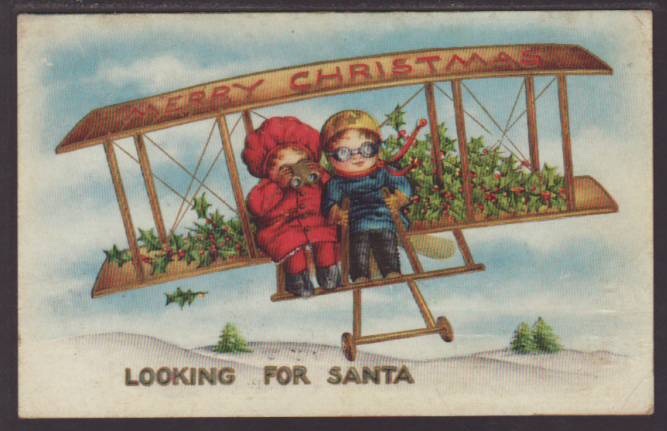 Christmas Children Looking for Santa Airplane Postcard 4707