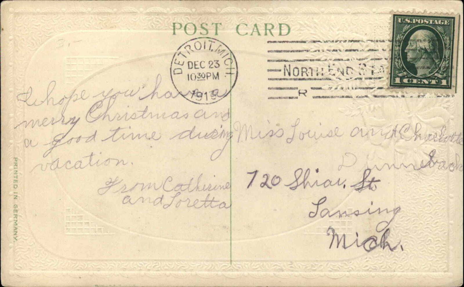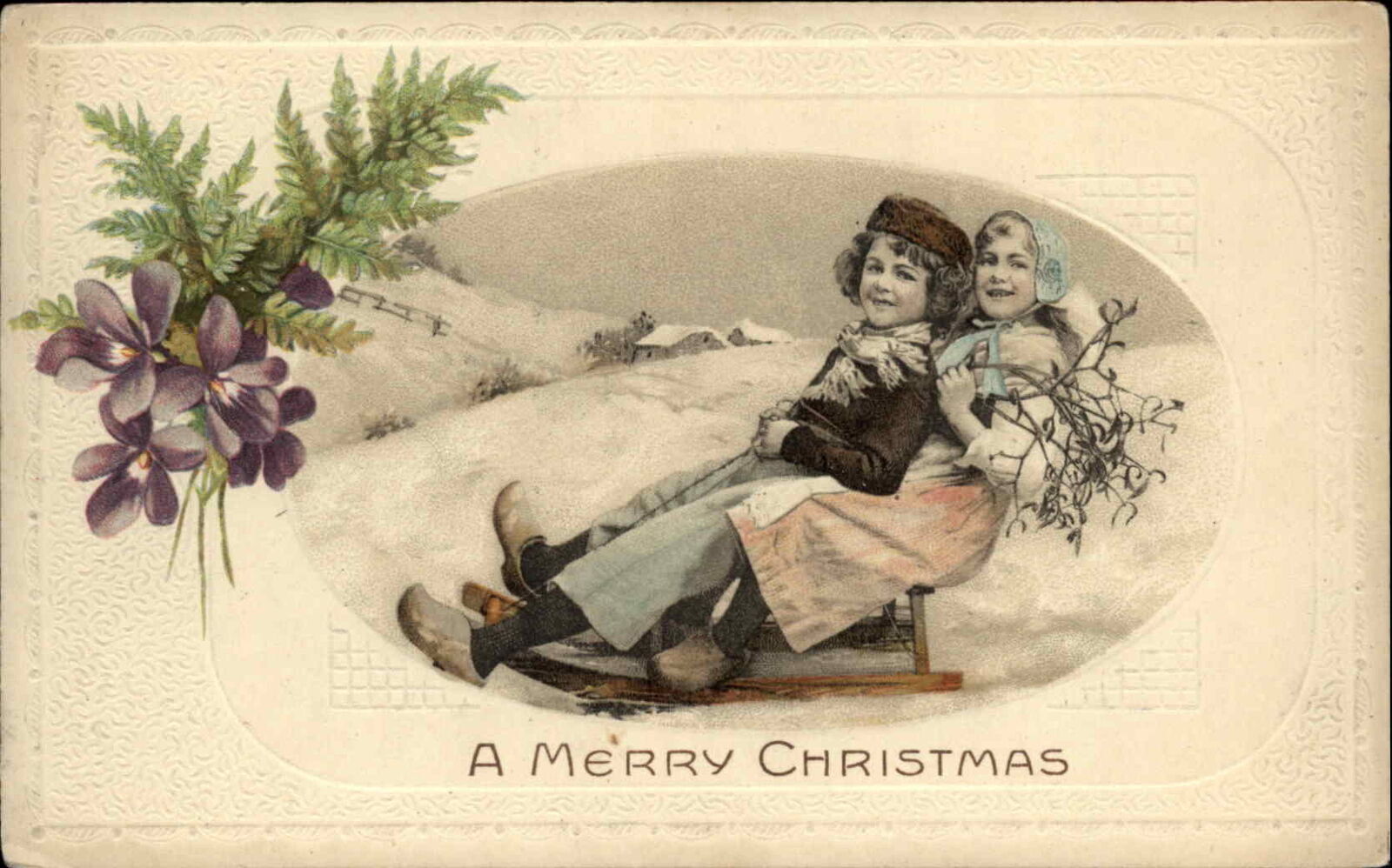 Christmas Children Sledding Flowers Embossed c1900s-10s Postcard
