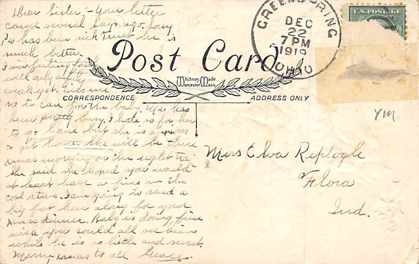 Christmas Days Postcard Postcard, Grade: 3 - tape on back to repair small tear left edge Size: Regular Size Postcard - approximately 3 1/2 inch x 5 1/2 inch (9 CM x 14 CM) Grading Scale: Grade 1 = Perfect corne ... Read More