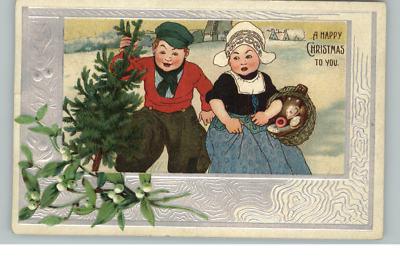 CHRISTMAS Dutch Boy & Girl c1910 Postcard