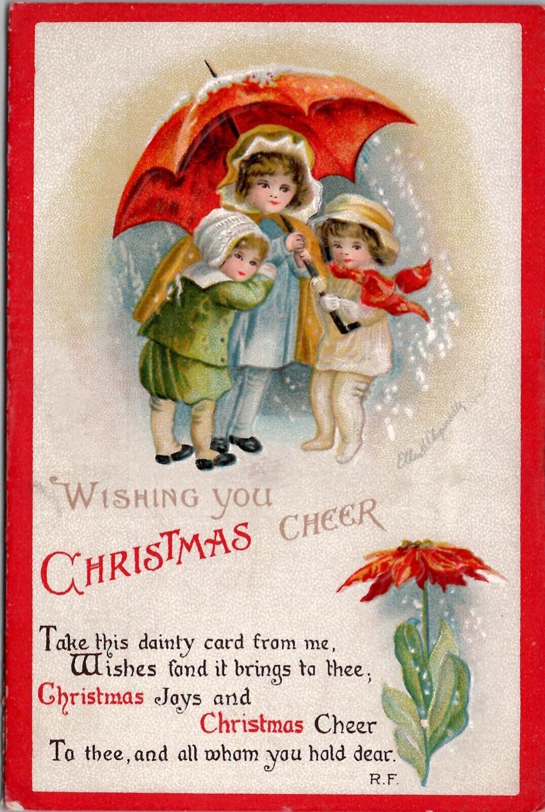 Christmas Ellen Clapsaddle Children Seek Shelter From Snow Umbrella Postcard X13