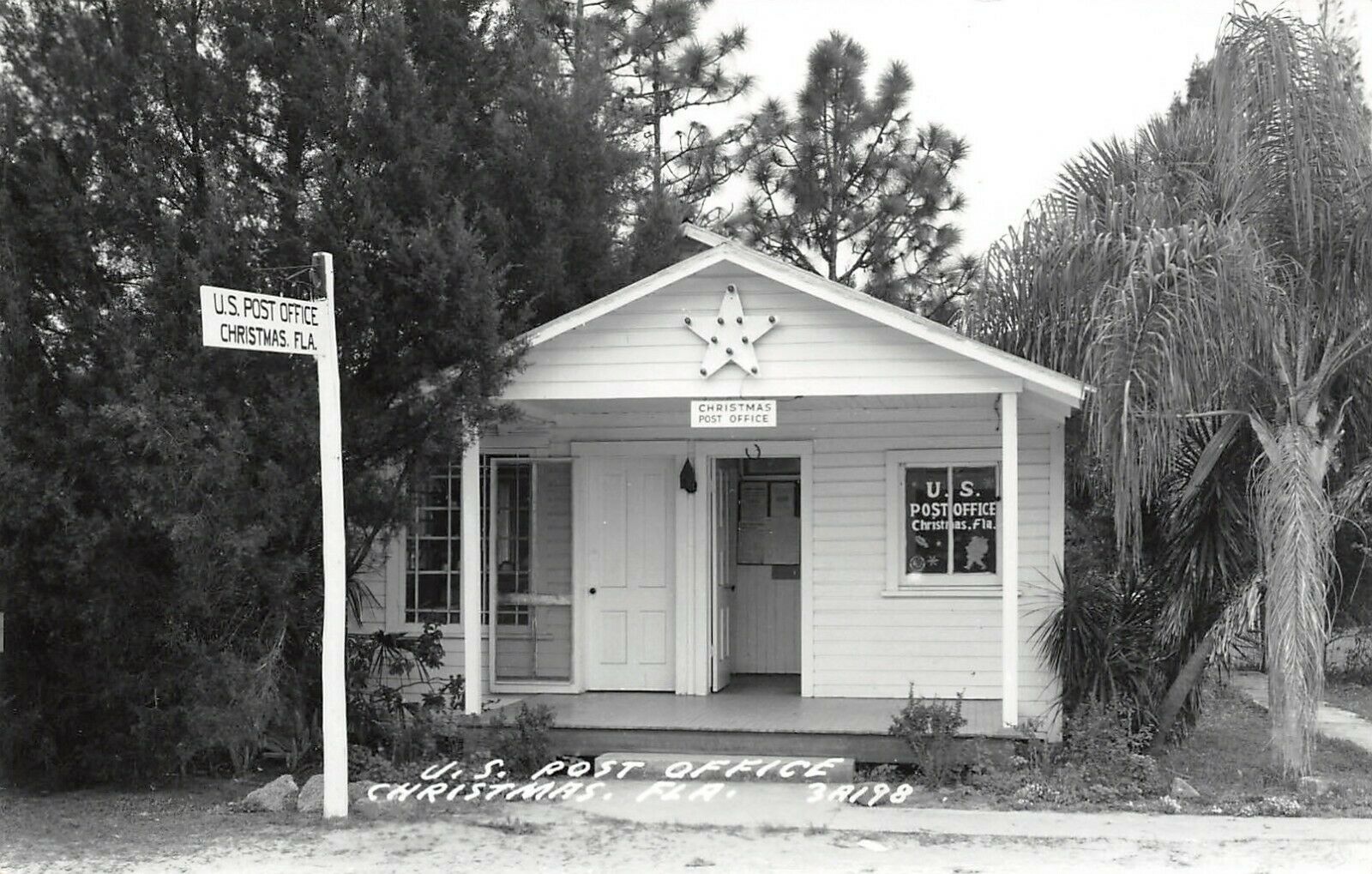 Christmas Florida~US Post Office~5 Point Light Star~Screen Door Open~1960s RPPC