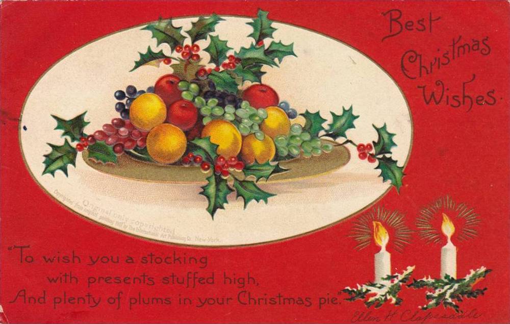 Christmas Greeting Platter of Fruit - Ellen Clapsaddle -