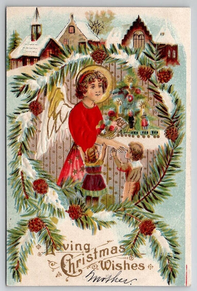 Christmas Greetings Angel Children Pine Cones Postcard U26