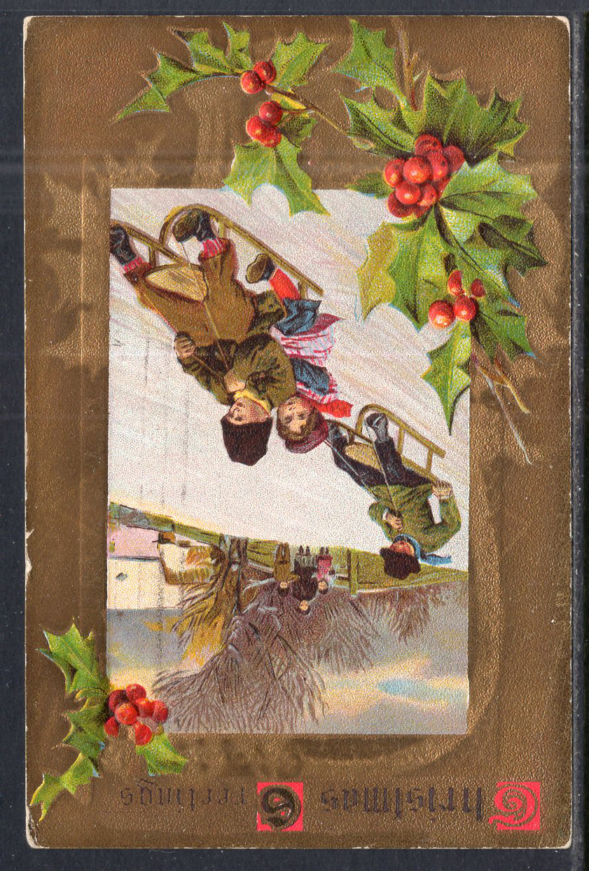 Christmas Greetings Children Sledding