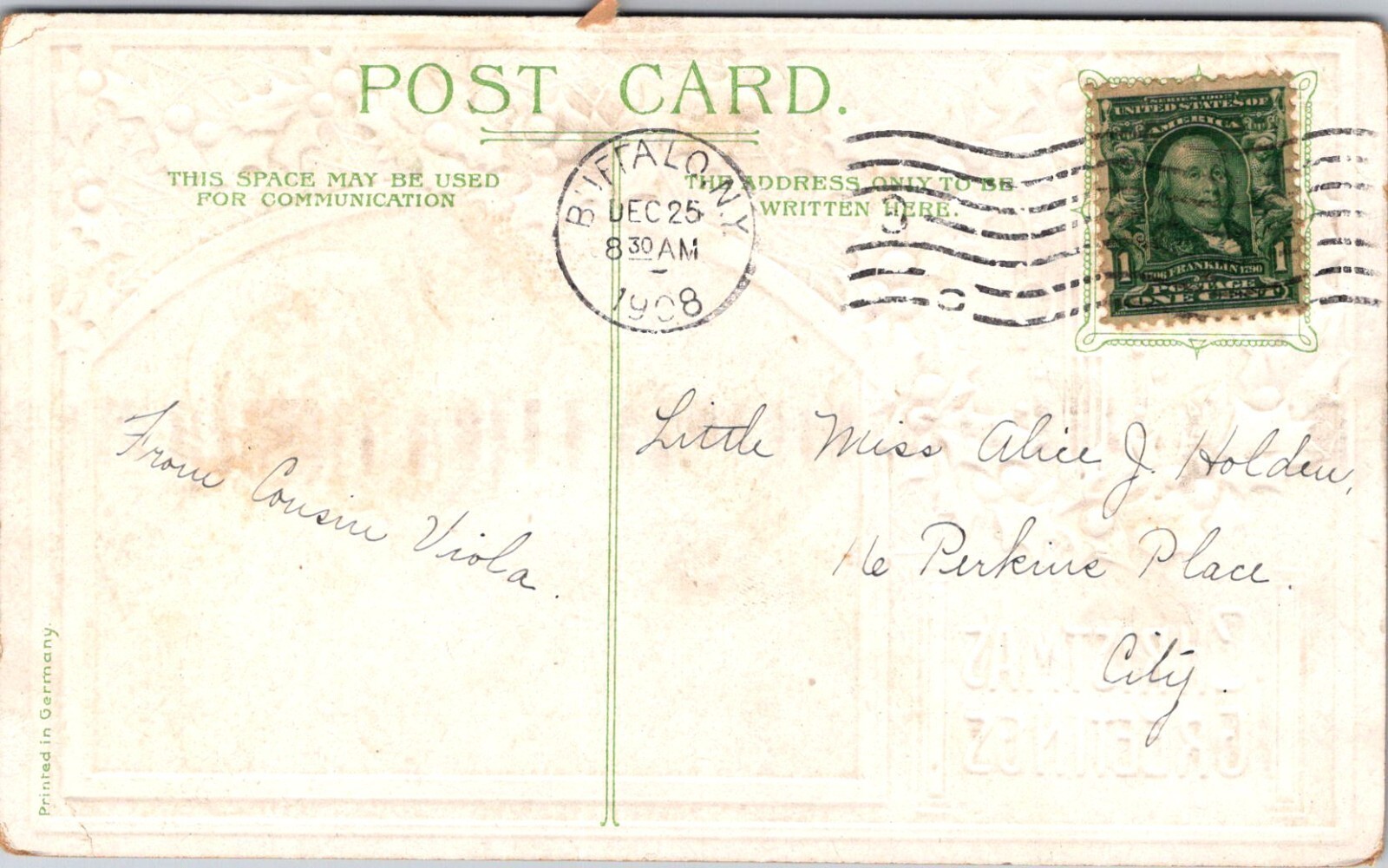 Christmas Greetings, Embossed Angels Cherubs c1908 Vintage Postcard Y46