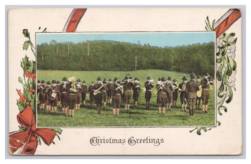 Condition: Unmailed, Showing Wear From Handling. Reasonable Offers Always Considered. Christmas Greetings Military Band Postcard