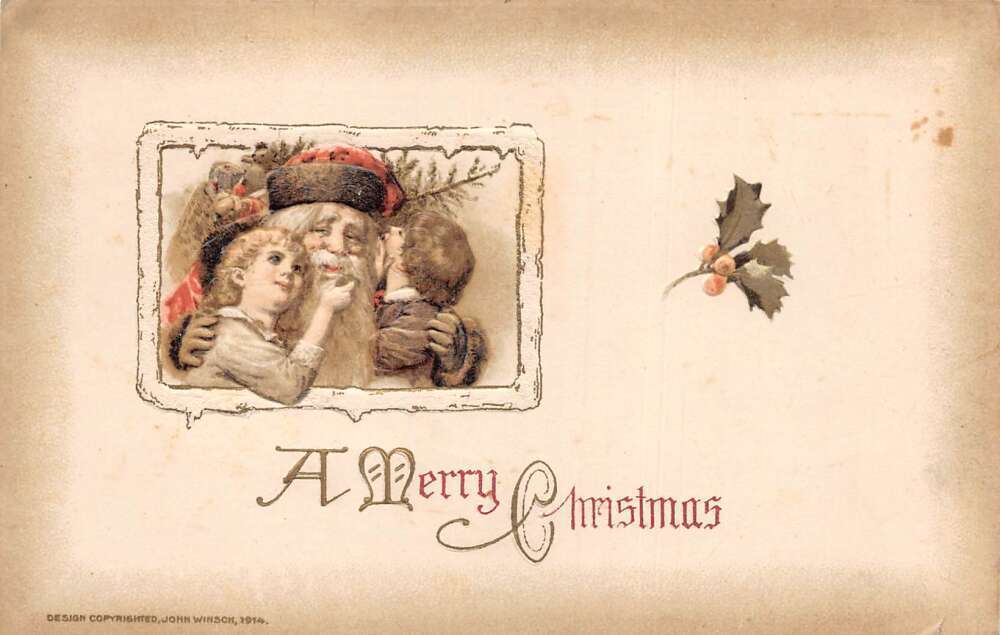 Christmas Greetings Santa Claus Hugging Children Embossed Winsch PC AA96011