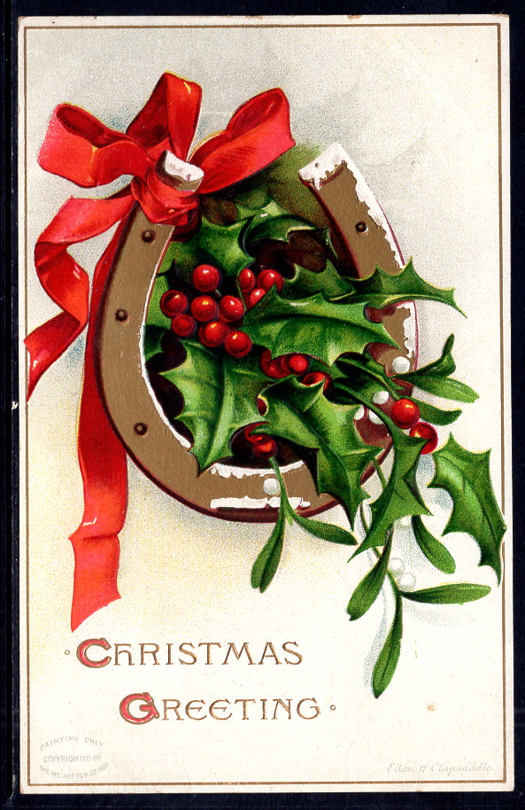 Christmas Greetings,Holly,Horseshoe